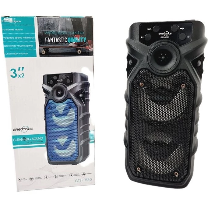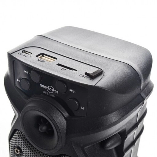 اسپیکر پرتابل GT1۵۶۰ را میتوان به شکل ایستاده به کار برد و علاوه بر بولوتوث با کارت حافظه و فلش مموری سازگاری دارد و همچنین وجود 2 ساب 3 اینچ باعث شده است تا بتوانید از قدرت صدای شگفت انگیز و فوق العاده با کیفیت بهره ببرید. ویژگیهای شگفت انگیز دیگر این اسپیکر وجود دو رقص نور رنگی در هنگام پخش موزیک است با توجه به سایز مناسب آن و جای گیری در کوله پشتی و چمدان گزینه مناسبی برای مسافرت، کمپینگ و همچنین استفاده داخل خودرو و قطار است شارژ دهی مناسب و همچنین استفاده در موقع ضروری ب عنوان پاور بانک مزیت های این اسپیکر مقرون ب صرفه را به گزینه های مناسبی در میان اسپیکر های مشابه تبدیل کرده است .