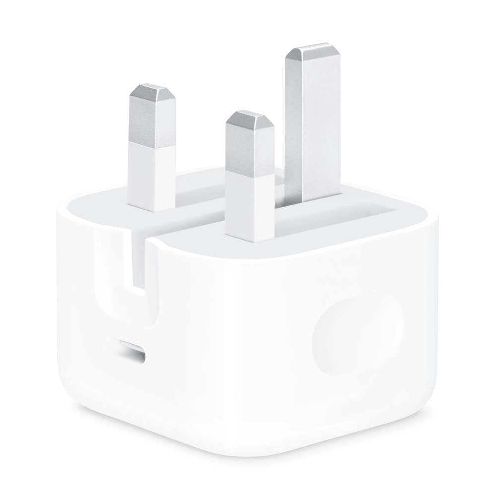 در شارژر 20 وات آیفون یک سه شاخه برق قرار گرفته که از آن برای اتصال شارژر به پریز برق استفاده میشود.
