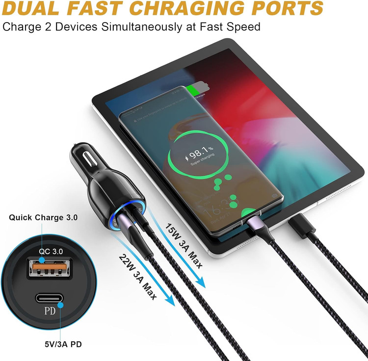 شارژر فندکی فست شارژ TE-348PD 3A QC3.0 PD 18W