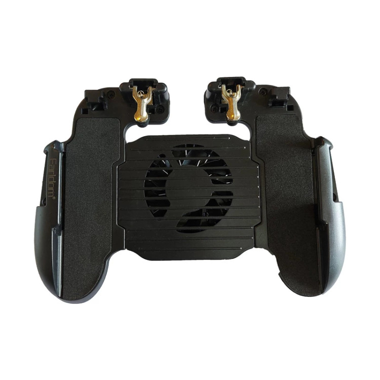 این دسته با یک عدد فن خنک کننده در زیر گوشی موبایل باعث میشود گوشی شما به هیچ عنوان داغ نشود و بر روی گوشی فشار بیش از حد وارد نشود. همچنین با پایه ای که در زیر این دسته قرار گرفته شما میتوانید به راحتی این دسته بازی را روی هر سطحی قرار دهید .